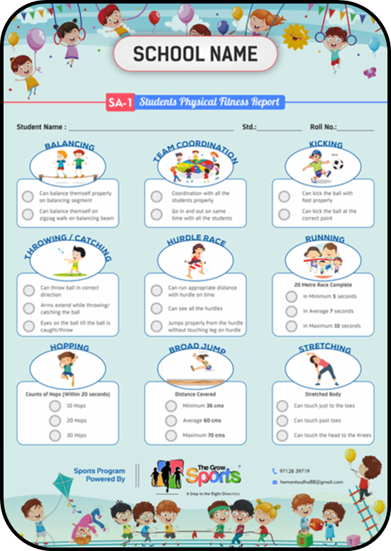 - Covers fundamental skills at lower age, sports specific skills along with multi sports skills at middle school